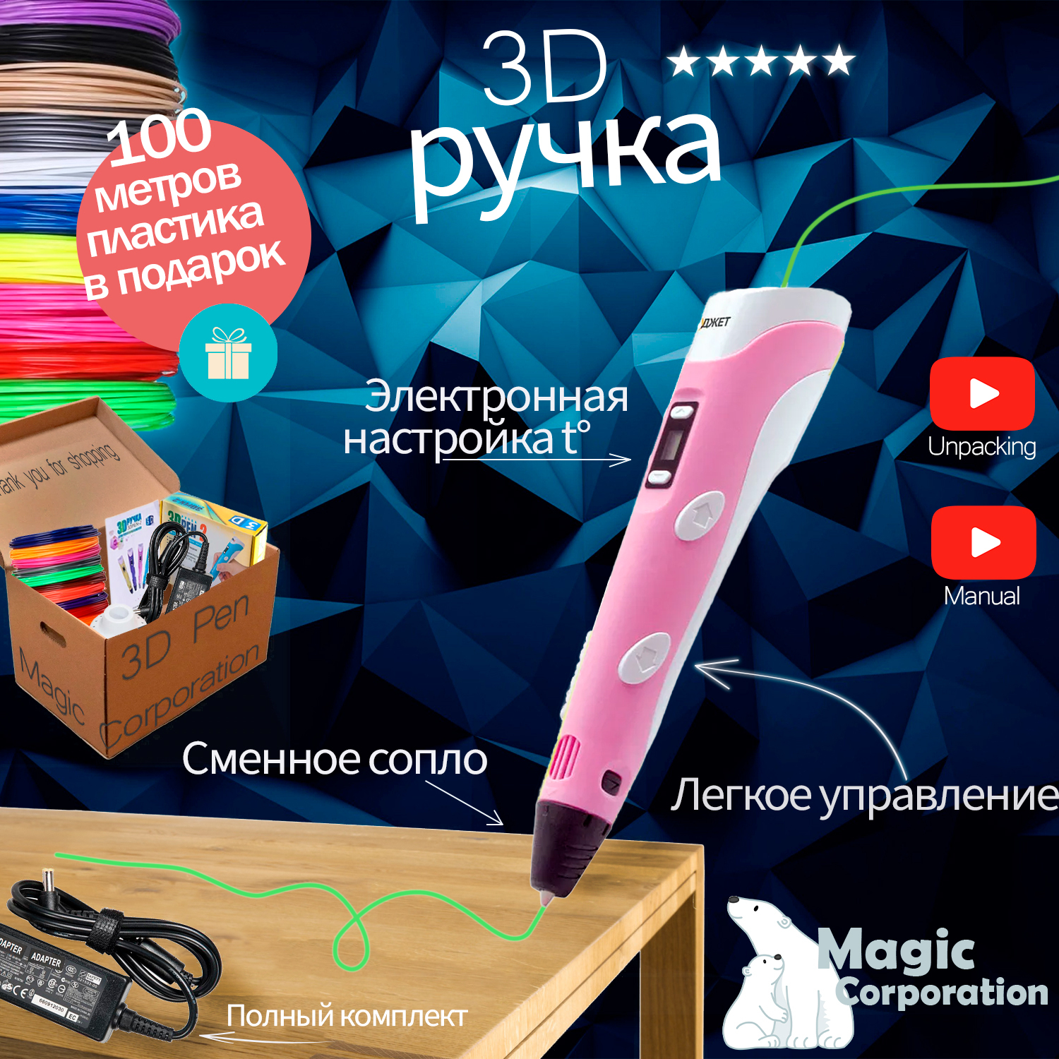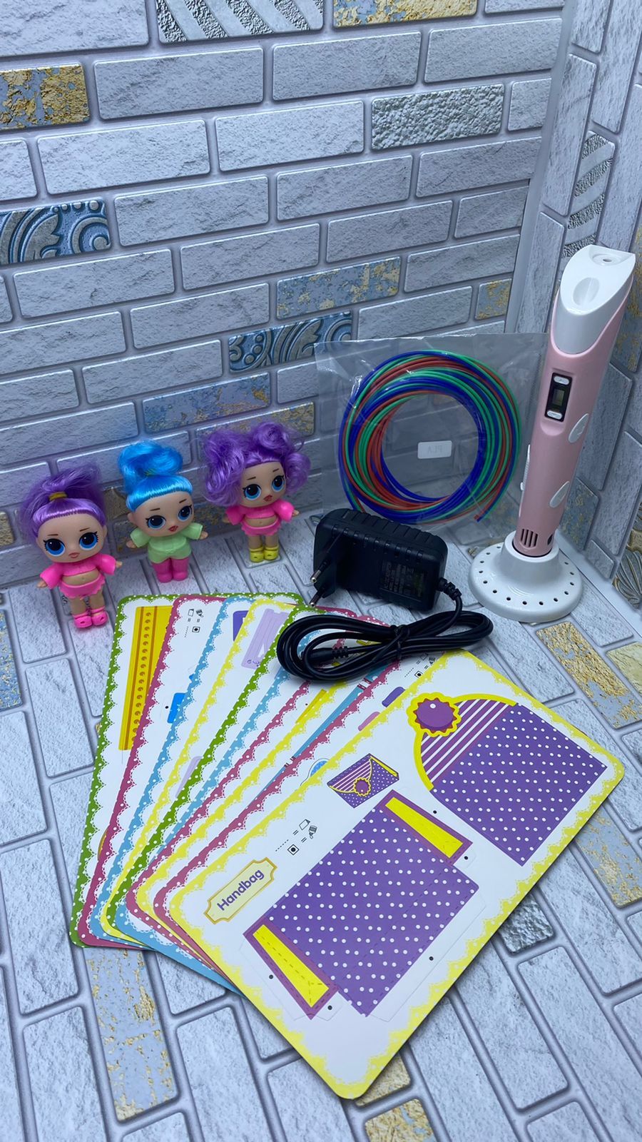 3D ручка с набором пластика и трафаретами / 3D Pen + 100 метров пластика