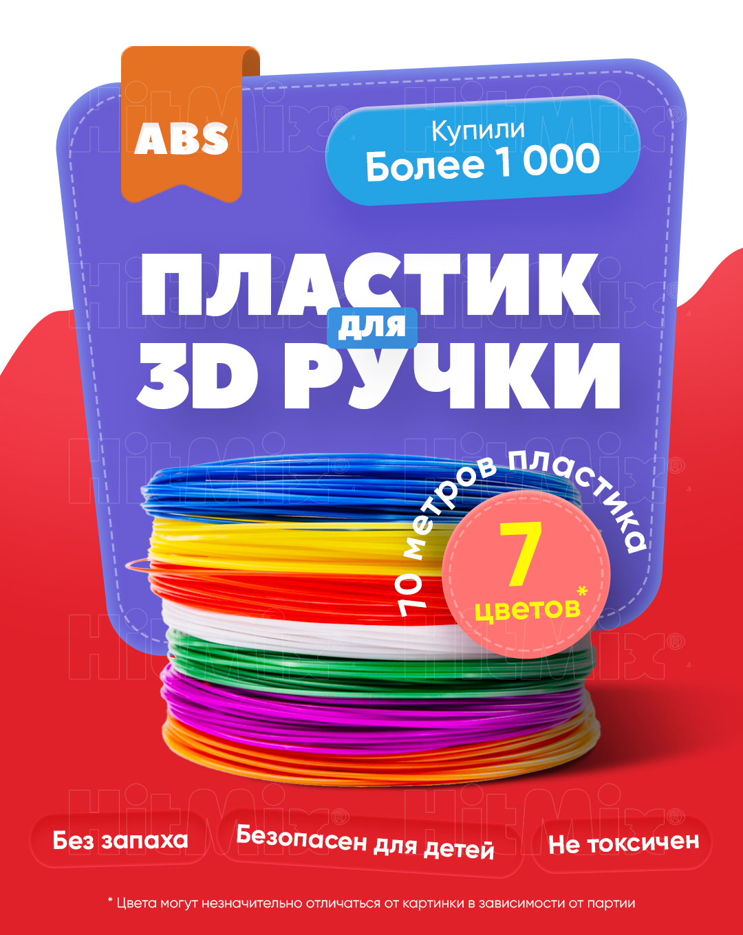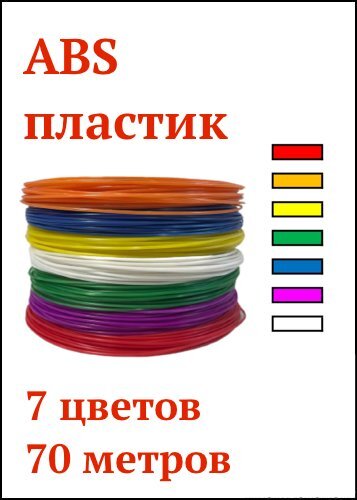 Пластик для 3D ручки / ABS / АБС / 7 цветов по 10 метров / для 3д ручки