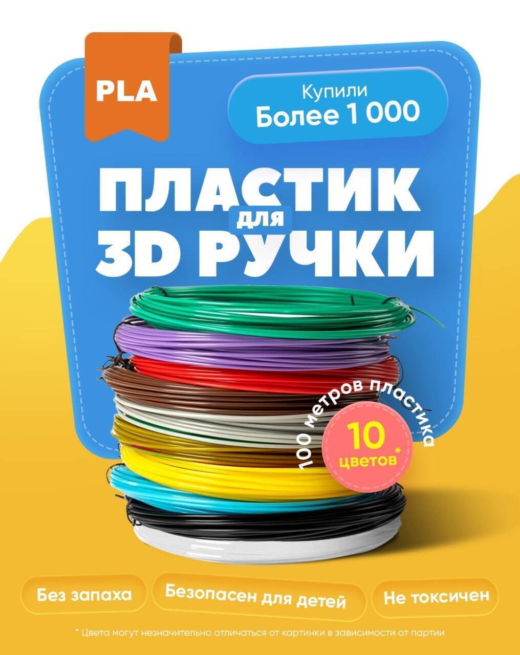Набор PLA пластика для 3д ручек, 10 цветов по 10 метров