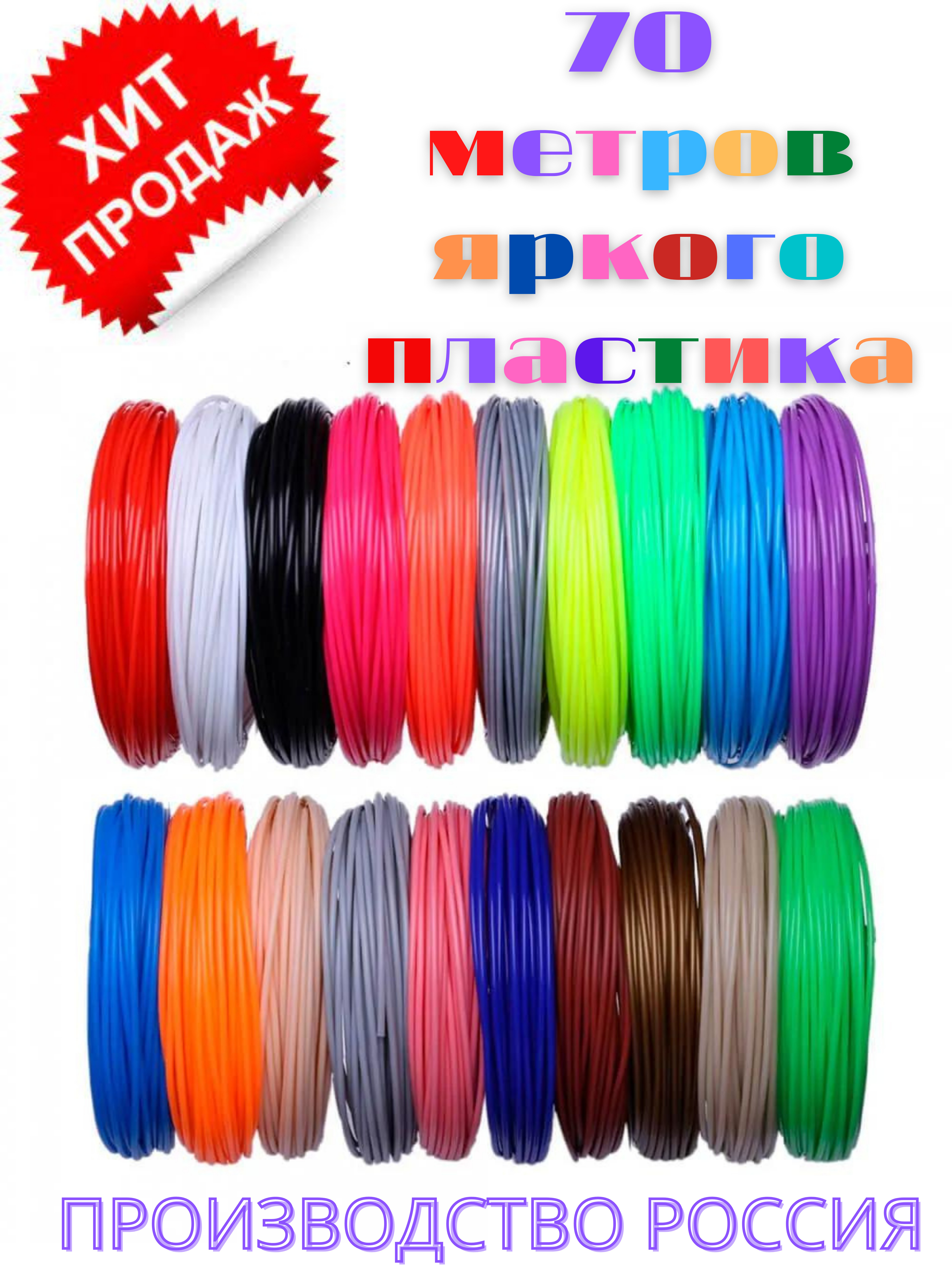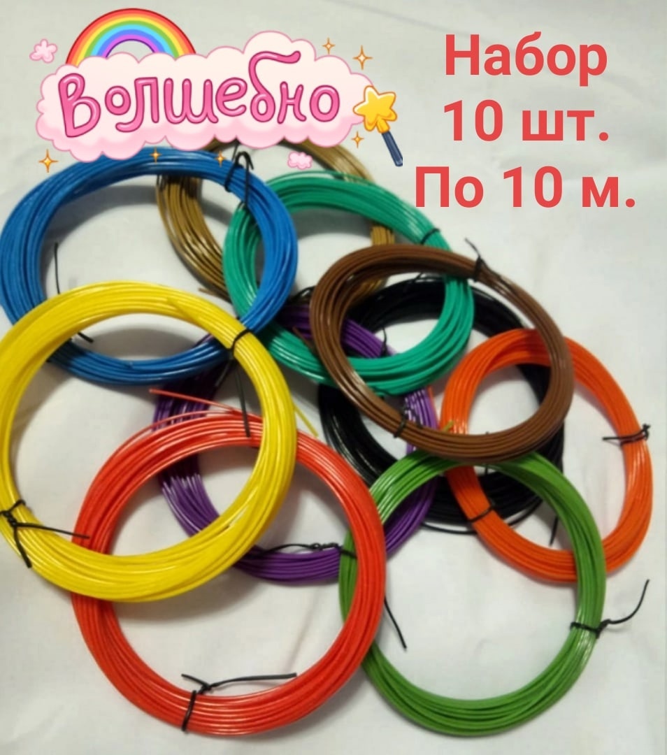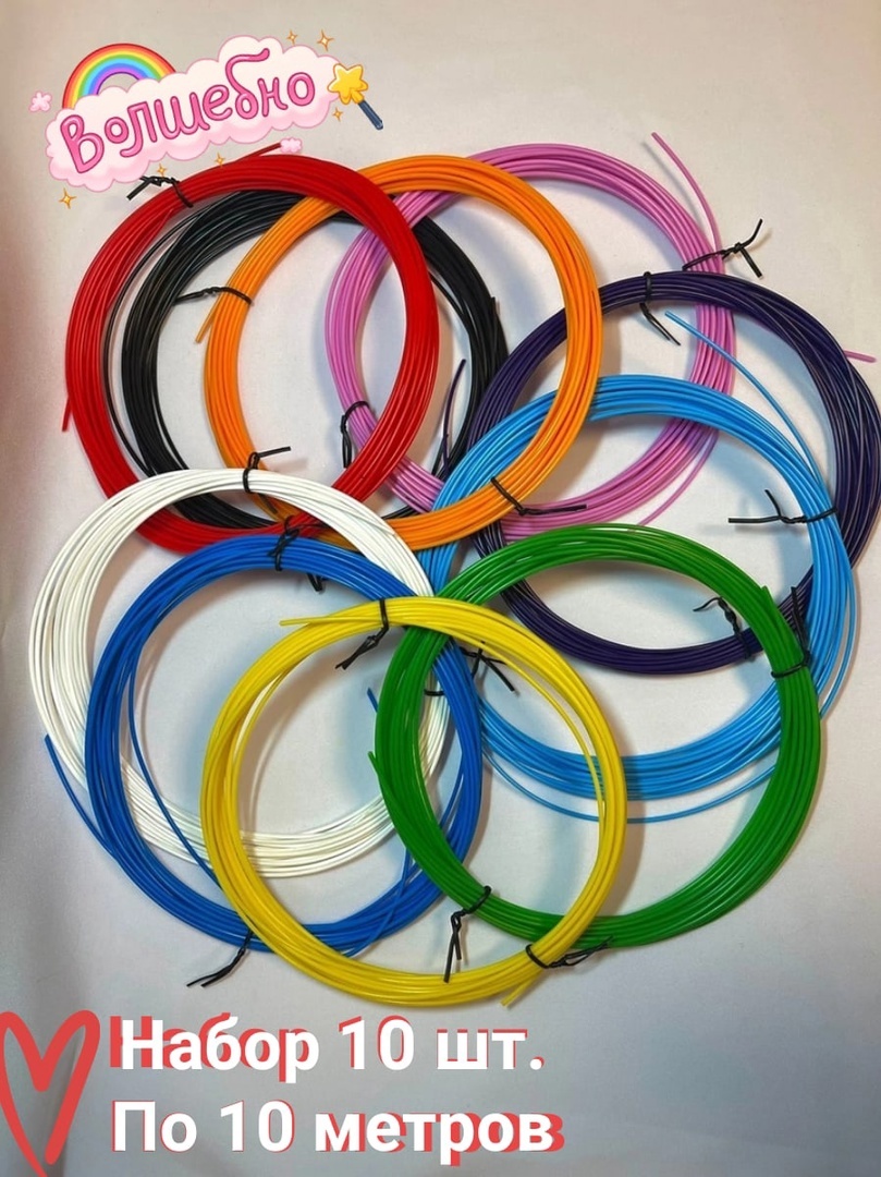Пластик для 3Д ручки PLA 10 мотков по 10 метров набор, картридж для 3D ручки PLA