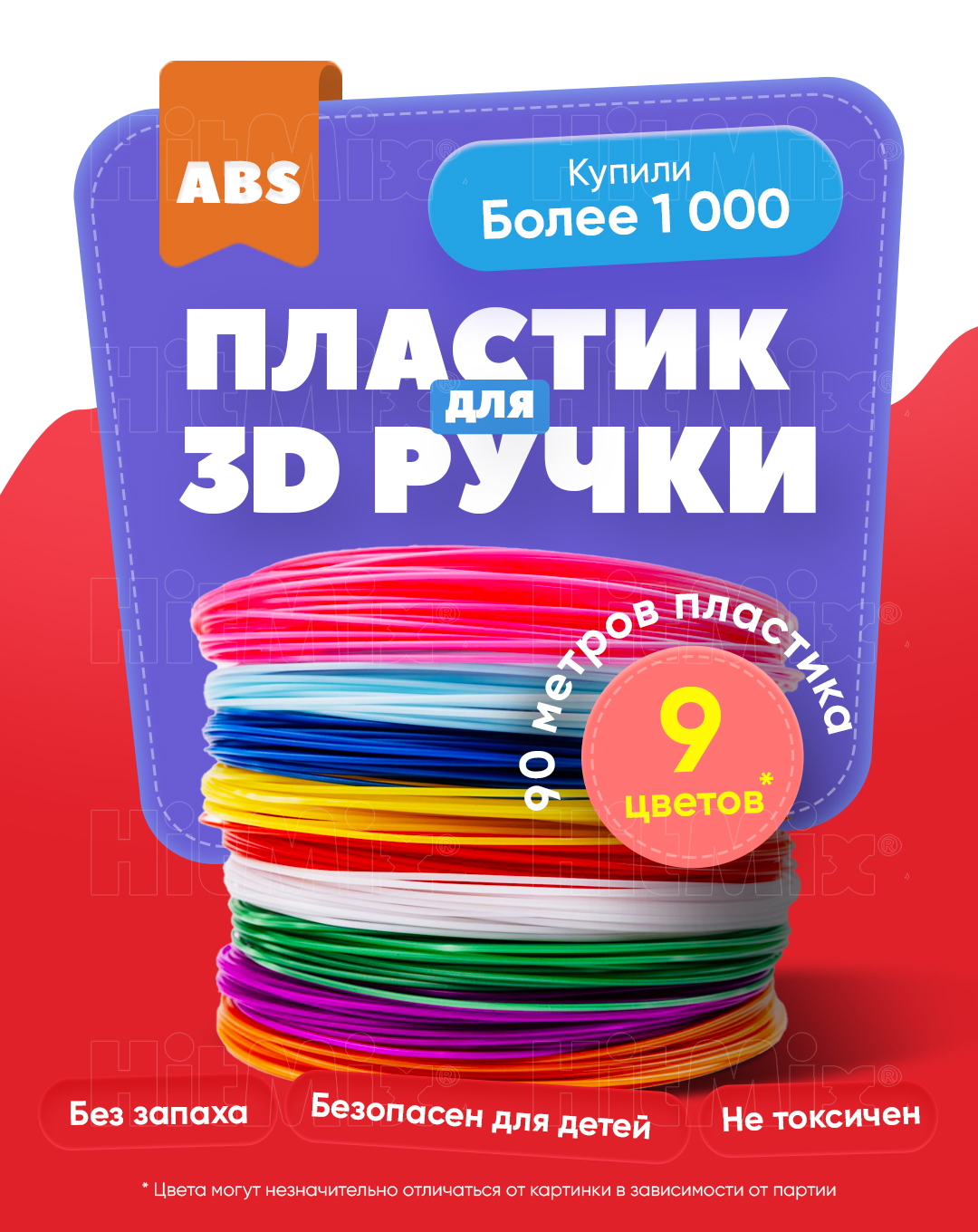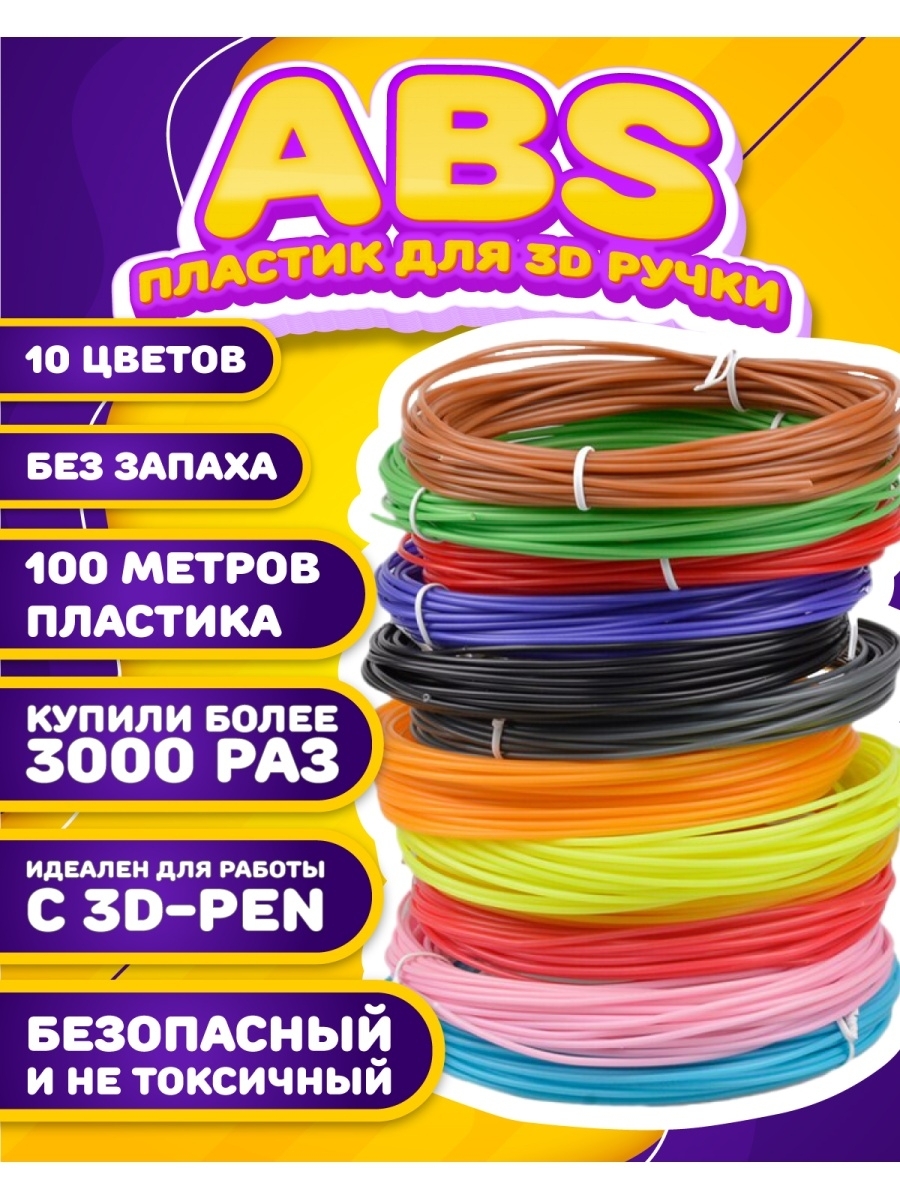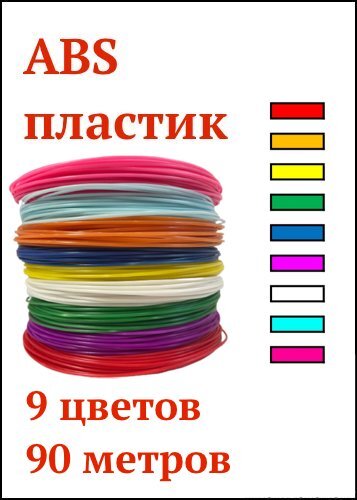 Пластик для 3D ручки / ABS / АБС / 9 цветов по 10 метров