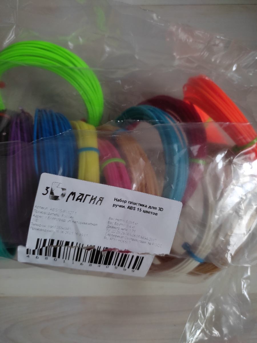 Набор пластика для 3D ручек, ABS, 15 цветов по 10 м.