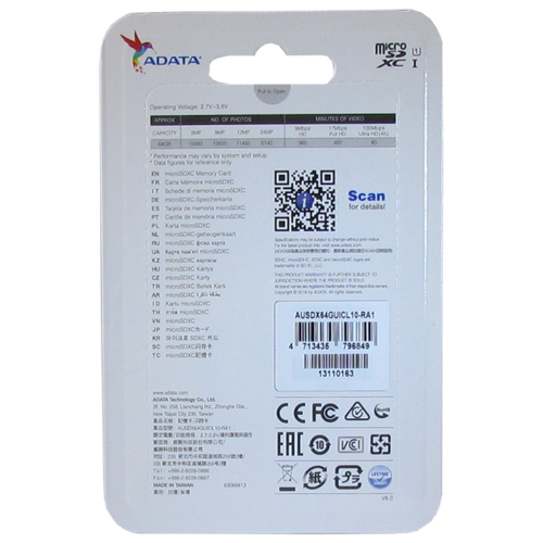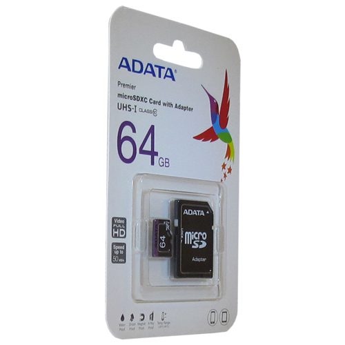 Карта памяти ADATA Premier microSDXC Class 10 UHS-I U1 64GB + SD adapter