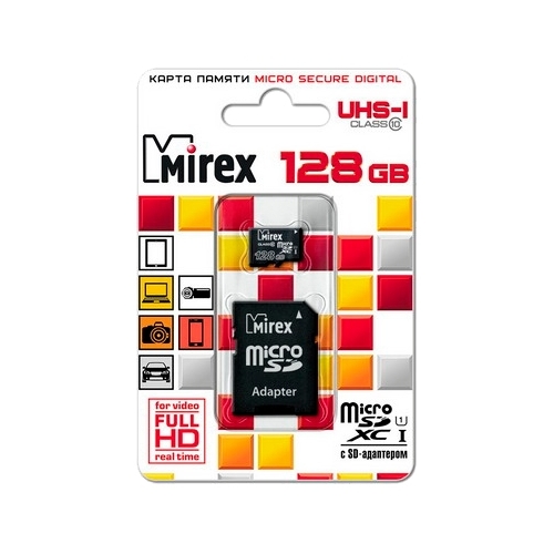 Карта памяти Mirex microSDXC Class 10 UHS-I U1 + SD adapter