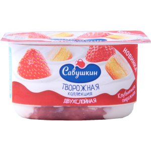 Творожная "Савушкин" двухслойная паста. Клубничное пирожное 3.5%, 120г