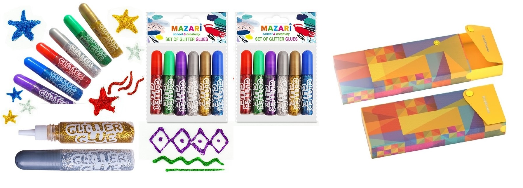 Декоративные блёстки-клей "Классик" 6 цветов (2 шт.) + ПОДАРОК пенал выдвижной пластиковый
