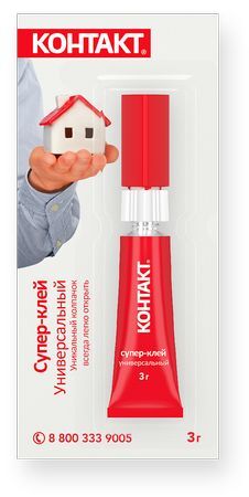 Клей моментальный 3 гр "Контакт" универсальный на блистере КМ 288-312 КОНТАКТ