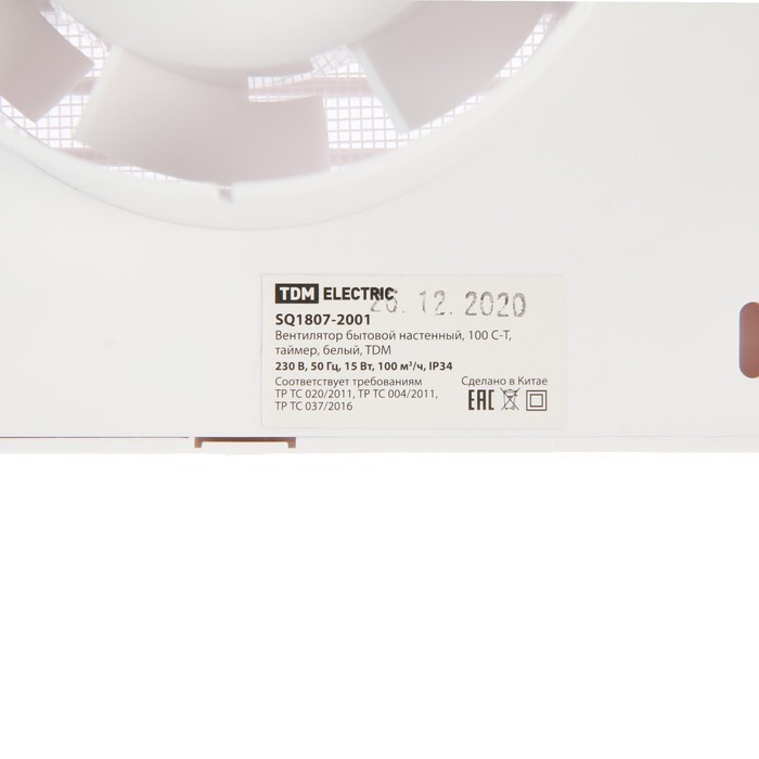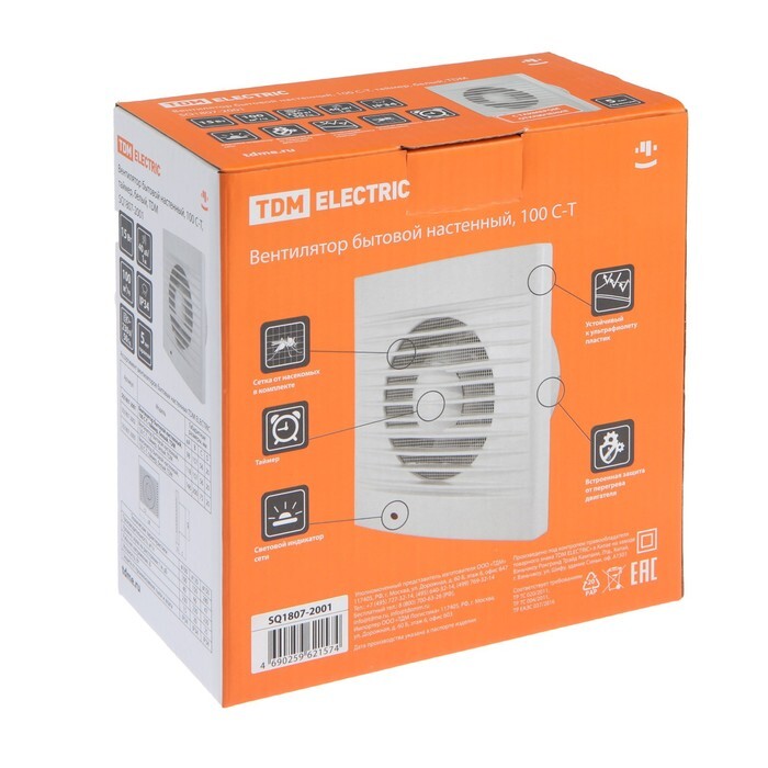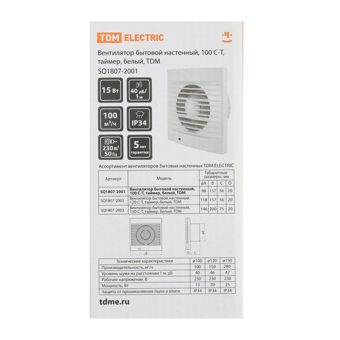 Вентилятор вытяжной TDM 100 С-Т, d100 мм, с таймером, белый