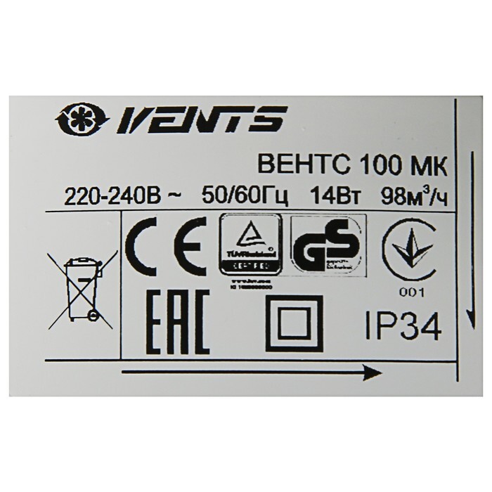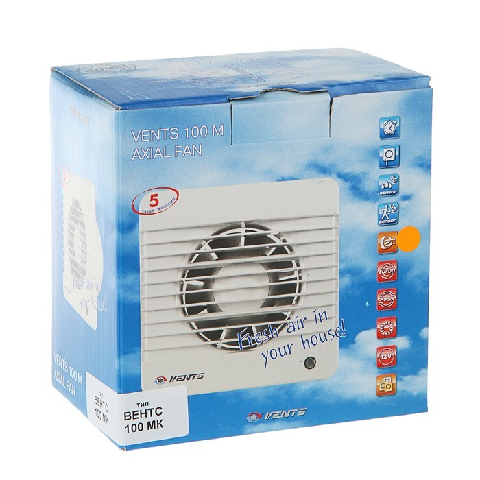 Вентилятор вытяжной 100 МК, d100 мм, 220-240 В, с обратным клапаном, цвет белый