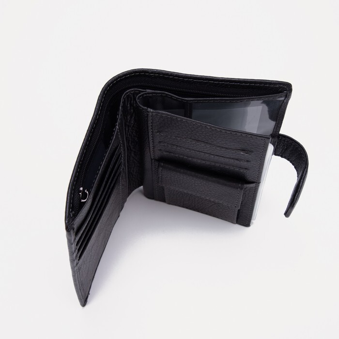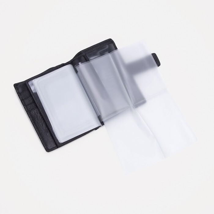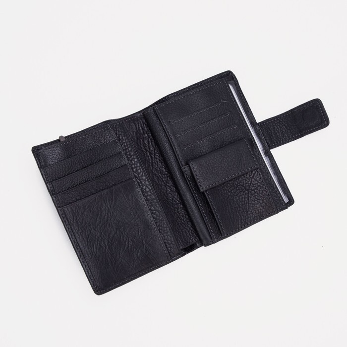 Портмоне на кнопке, отдел для автодокументов и паспорта, цвет чёрный