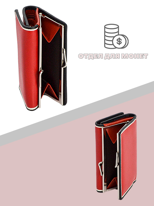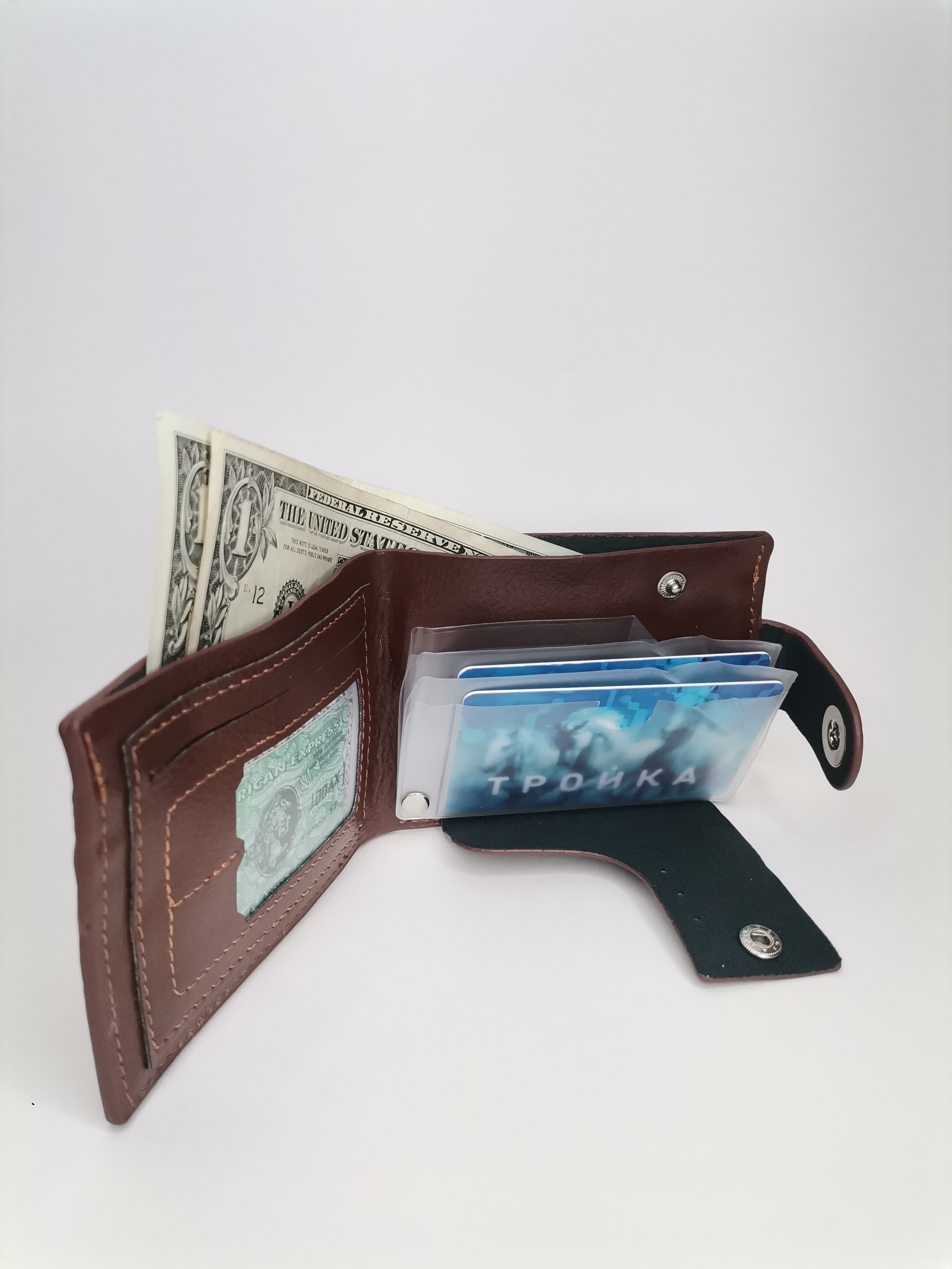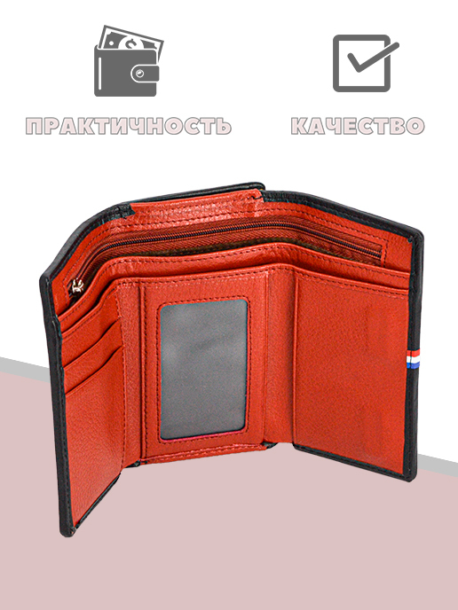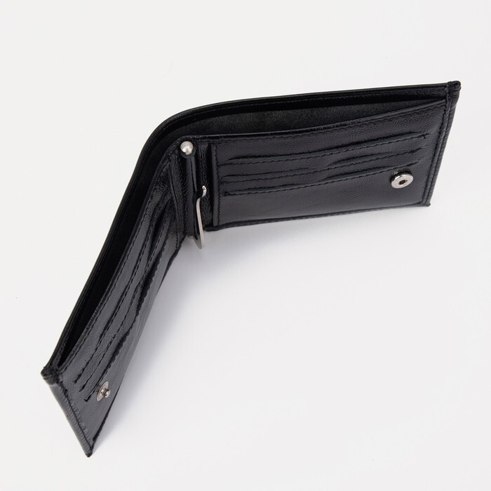 Портмоне, 3 отдела на кнопке, цвет чёрный