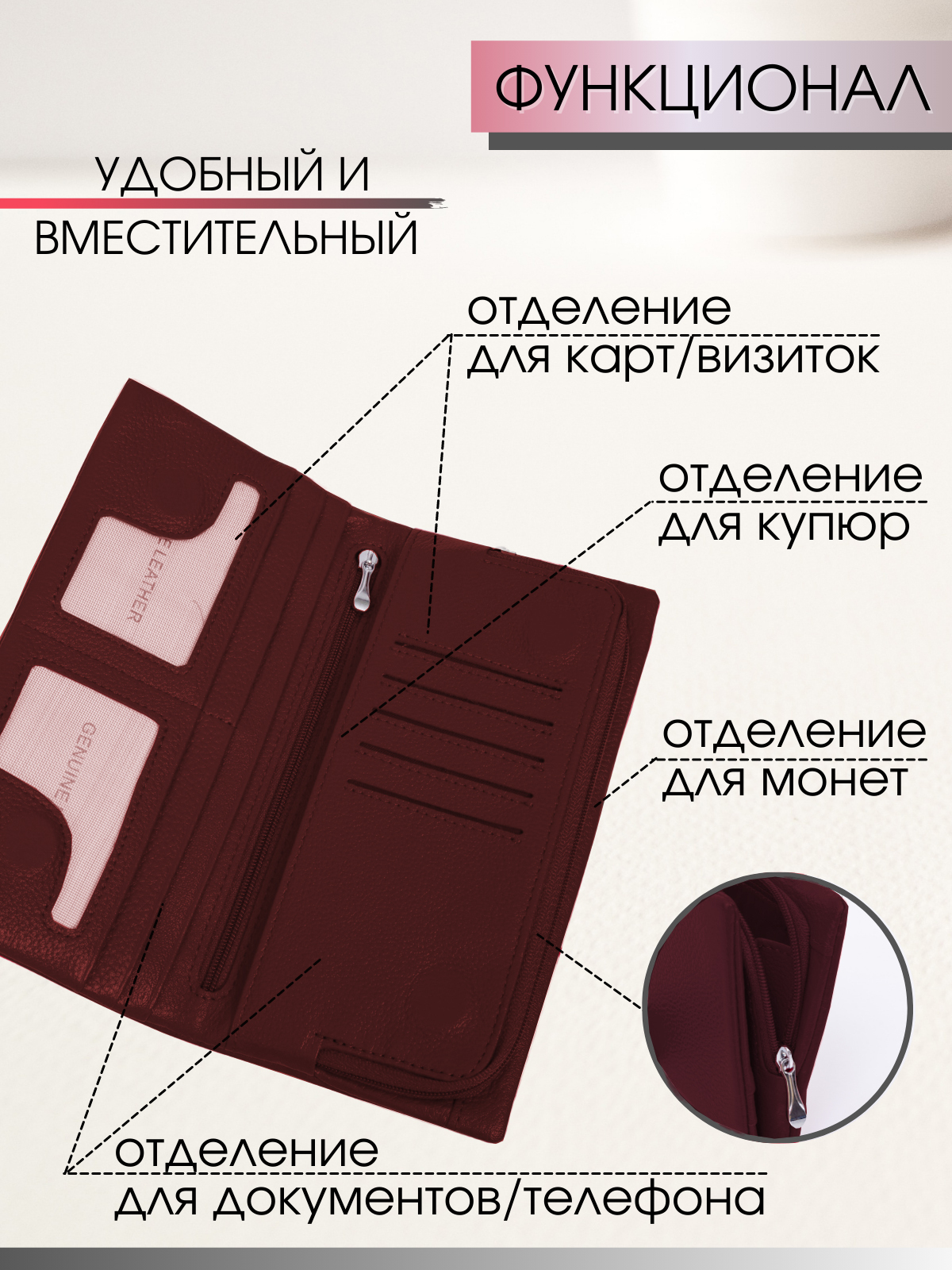 Кошелёк на молниях, цвет красный