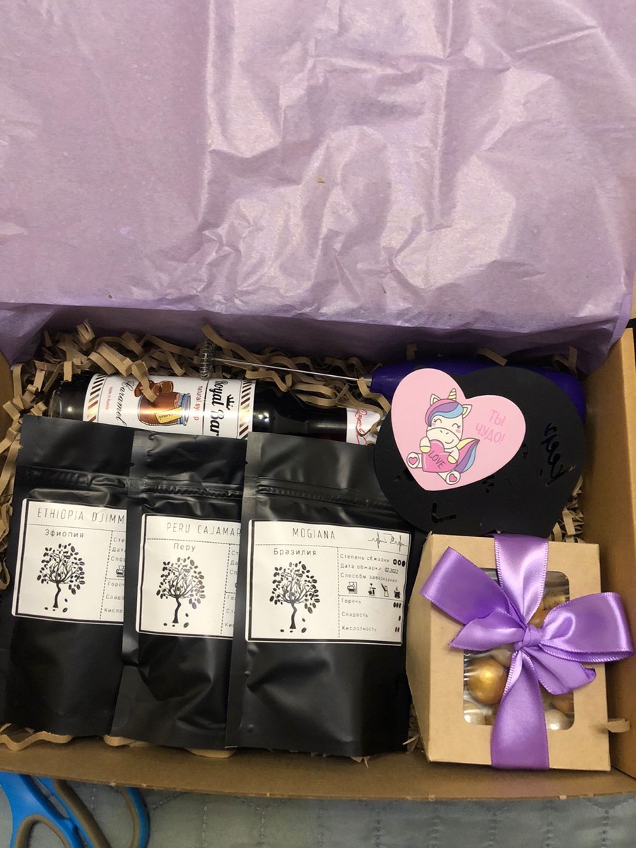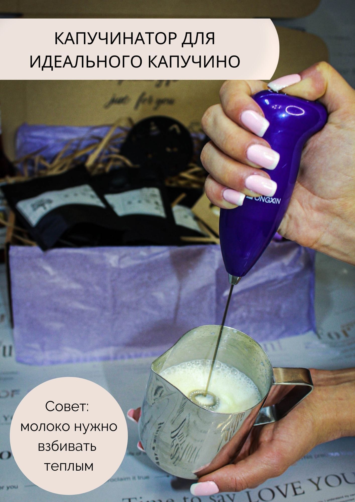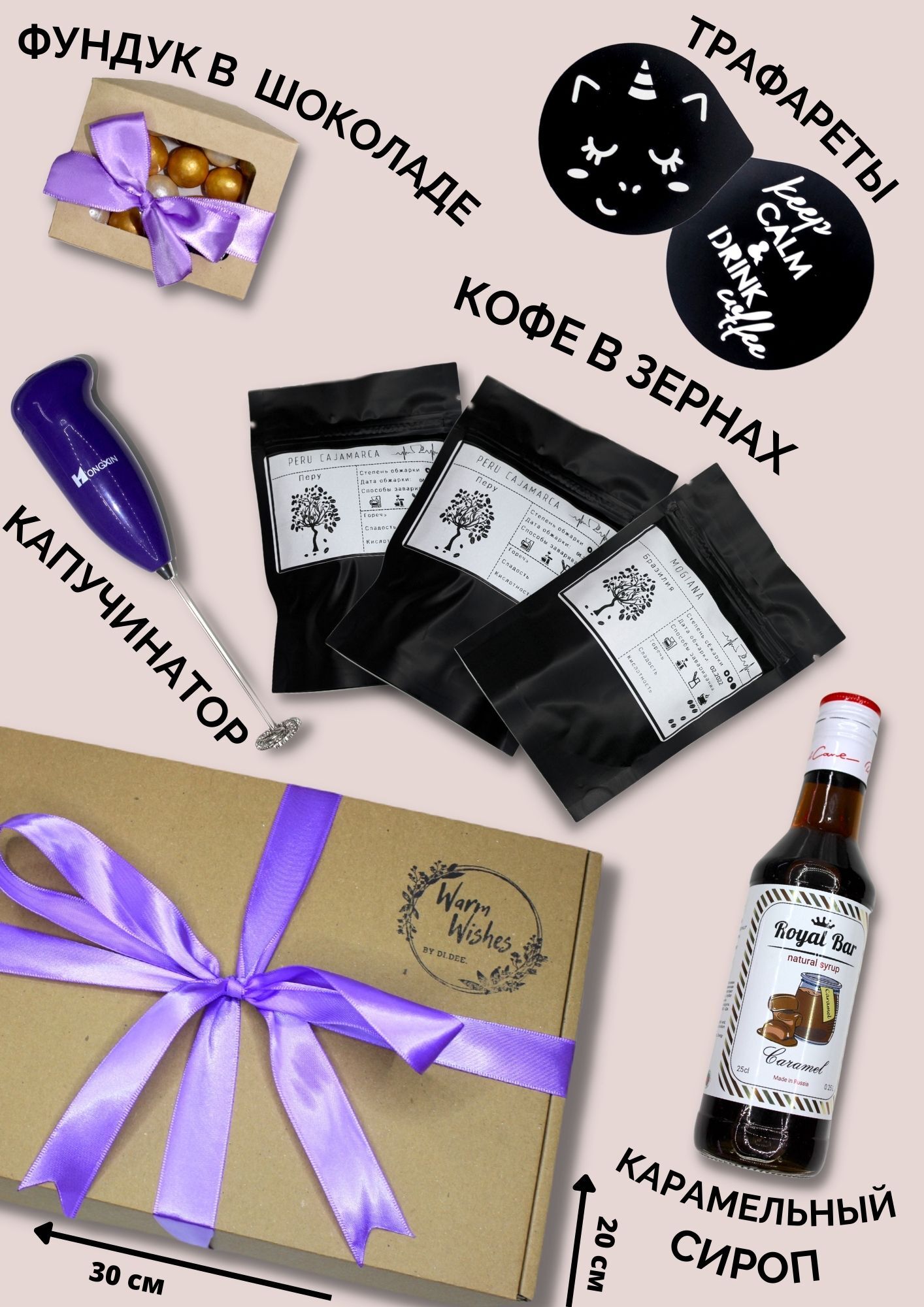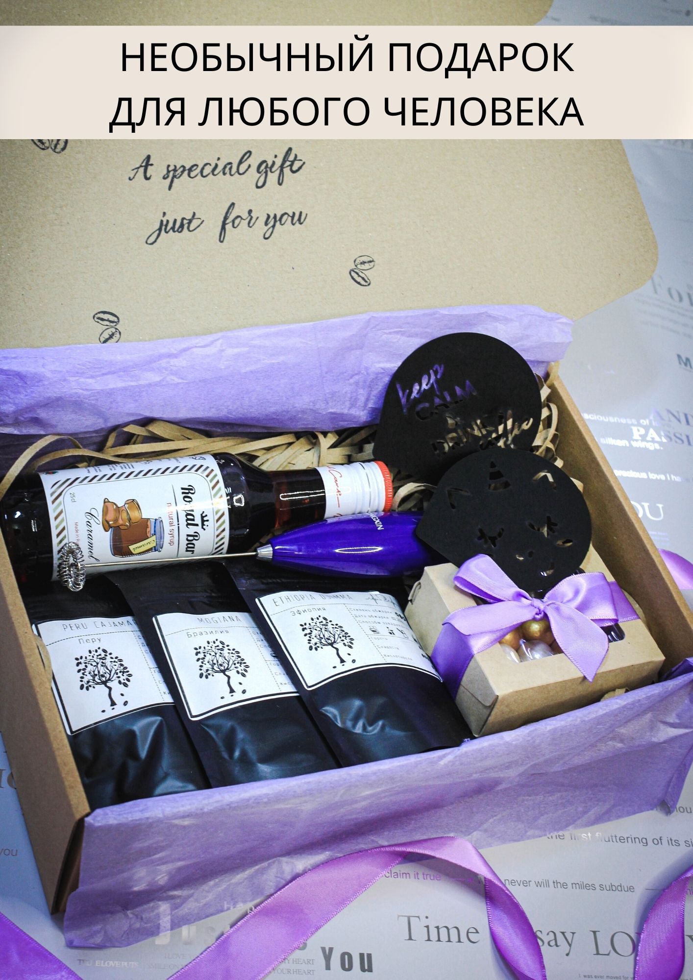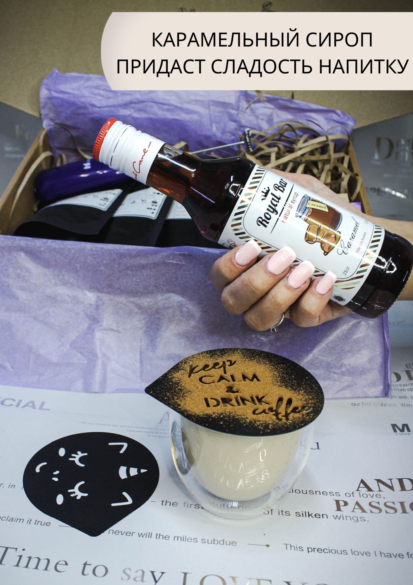 Подарочный набор кофе с сиропом, капучинатором и трафаретами коллеге, подруге, учителю, воспитателю
