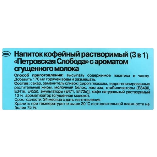 Растворимый кофе Петровская слобода 3 в 1 Сгущенное молоко, в пакетиках