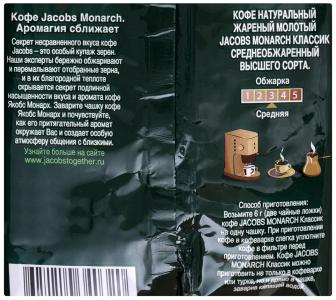 Кофе "Jacobs" Monarch жареный молотый, 75г