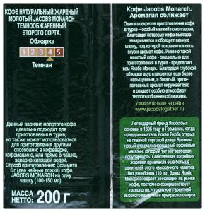 Кофе "Jacobs" Monarch жареный молотый для турки, 200г