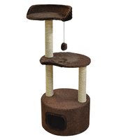 Домоседы Дом — когтеточка круглый с лежанкой и игрушкой, коричневый, 51х51х123 см
