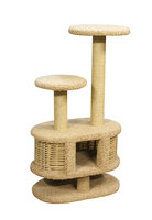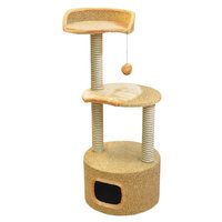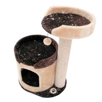 Домоседы Дом — когтеточка круглый с лежанкой и игрушкой, бежевый, 51х51х123 см