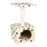 Petmax Домик — когтеточка VICENZA квадратный с площадкой, бежевый, рис. Кошачьи лапы, 30х30х55 см