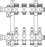 Коллекторная группа с расходомерами, дренаж. краном и воздухоотвод. 1" х 5х3/4" сталь ALT