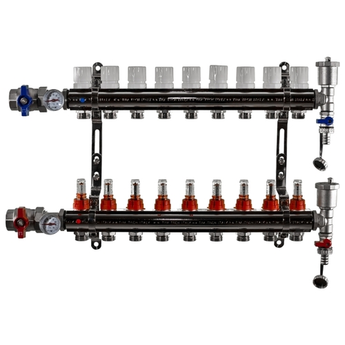 Коллектор котельной разводки WARME WKS85 - 1"1/2 НР на 10 контуров 1"1/2 НГ (до 85кВт, черная сталь)