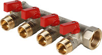 Коллектор проходной запорный STOUT (SMB 6200 341204) 3/4" НР-ВР, 4 отвода 1/2" (красные ручки)