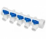 Коллектор полипропиленовый PPR 40х20 5 выходов (синие краны) TEBO