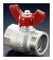 STOUT Коллектор с шаровыми кранами 1", 2 отвода 1/2" (красные ручки)