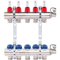 Коллектор Uni-Fitt 1"х3/4" 5 вых. из латуни с расходомерами и термостатическими вентилями