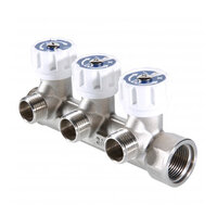 Коллектор Valtec никелированный с регулирующими вентилями и наружной резьбой 3/4" х 1/2" на 3 отвода