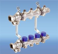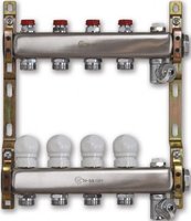 Коллекторная группа ELSEN из нержавеющей стали 1" с вентилями, 4 контура 3/4"