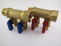 Коллектор Tiemme с шаровыми кранами с отводами 1/2", 3/4", 2 отвода, никелированная латунь 1820004