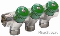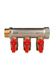 Коллектор 3/4" внутр(г)х3отвода 1/2" нар(ш)х3/4" нар(ш) с шаровыми кранами Stout
