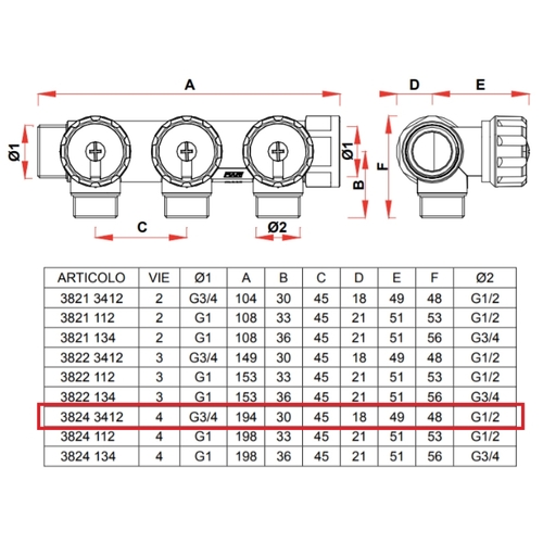 Коллектор FAR 3/4" х 1/2" 4 выхода, присоединение евроконус