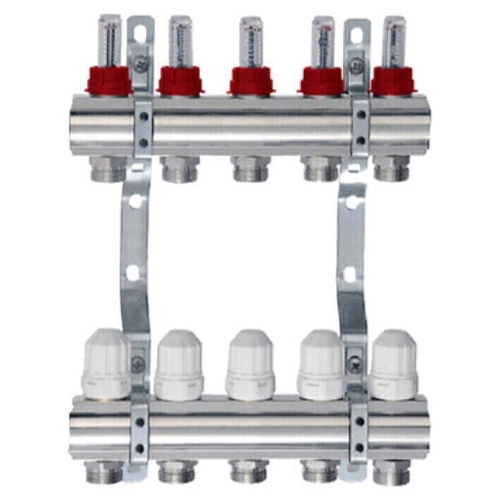 Коллекторная группа Tim (KD005) 1" ВР, 5 отводов 3/4", расходомер