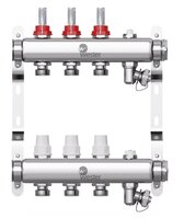 Коллектор из нержавеющей стали для теплого пола в сборе, 3 вых., TIM арт. KAS5003