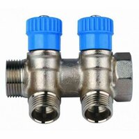 Коллектор с вентилями 1"х1/2", 2 выхода (синие ручки) GF