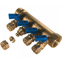 Коллектор с отсекающими кранами 40х20 2 вых. PPRC бел (синий)