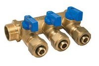 Коллектор с кранами и цангами 1"-16ц-3 выхода (синие ручки)