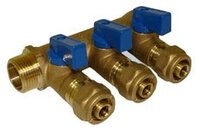 Cантехнический коллектор с шаровыми кранами TIM 3/4" - ф 16 цанга / 3вых.