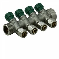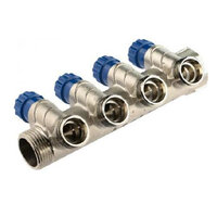 Коллектор латунный с отсекающими кранами сверху 1" на 4 выхода с наружной резьбой XF25415-4