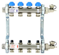 Коллектор Neptun IWS 1"х 3/4" 7 выходов. Нержавейка. С расходомерами