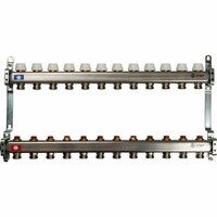 Распределительный коллектор Stout SMS с регулирующими вставками на 12 контуров 1"х3/4"