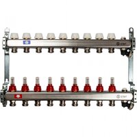 Коллектор нерж. в сборе универсальный 1" ВР-3/4" НР, 9 выходов