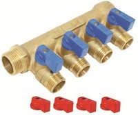Коллектор с кранами латунь 4 вых. (крас.+син. ручки) 3/4 - 16 ц. IS