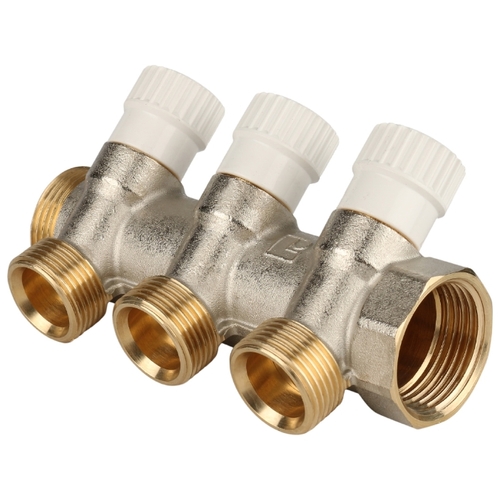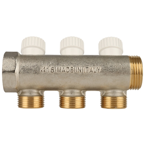 Сантехнический коллектор TIM вентильного типа, 1" г/ш - 16 цанга, 45°/ 3 вых., арт. MR135N-1-C-3