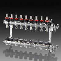 Коллекторная группа в сборе STOUT - 1" на 9 контуров 3/4" (нерж.сталь, с вентилями)