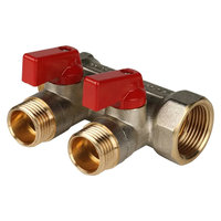 Коллектор 2 выхода 3/4""х1/2"" НР с отсекающими кранами