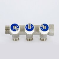 Коллектор с шаровыми кранами 1"х1/2", 3 выхода. (н.р.) Valtec