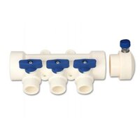 Коллектор запорный проходной KALDE - 40 на 4 контура 20 (с воздухоотводчиком, цвет ручек красный)